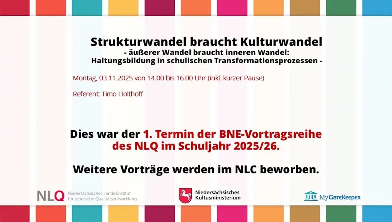 Mit dem Laden des Videos akzeptieren Sie die Datenschutzerklärung von YouTube.play_circleVideo von YouTube ladenTimo Holthoff: Strukturwandel braucht Kulturwandel... ...äußerer Wandel braucht inneren Wandel: Haltungsbildung in schulischen Transformationsprozessen